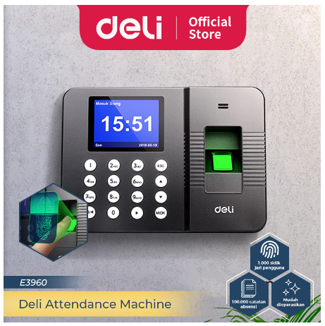 Deli Mesin Absensi Sidik Jari 1000 Kapasitas Sidik Jari Bahasa Indonesia Laporan Otomatis E3960
