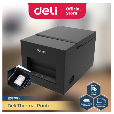 Deli Thermal Printer Printer Kasir Struk 58 mm USB Bluetooth Cash Drawer E581PW