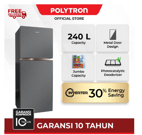Kulkas 2 Pintu dengan kapasitas 240 Liter, JUMBO METAL hadir dengan design kulkas yang lebih lebar untuk kenyamanan dalam menyimpan makanan anda di kulkas.