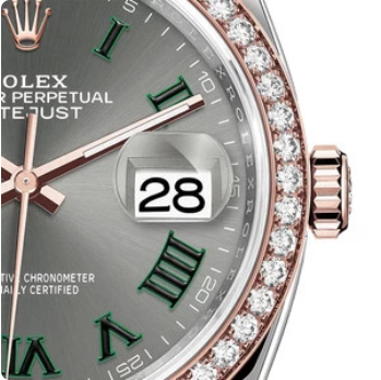 1x Rolex Datejust 36 - 126281 Wimbledon Diamond Bezel Steel-RG Dial Slate Bracelets Jubilee, five-piece links