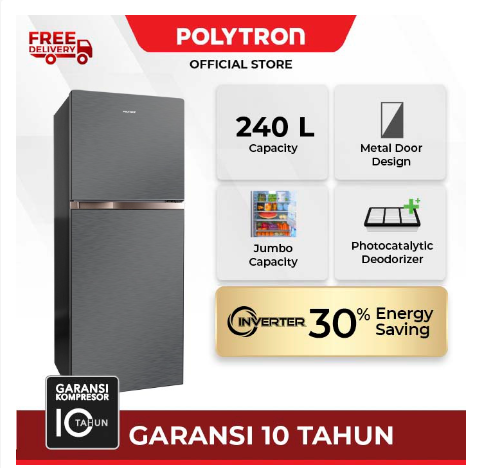 Kulkas 2 Pintu dengan kapasitas 240 Liter, JUMBO METAL hadir dengan design kulkas yang lebih lebar untuk kenyamanan dalam menyimpan makanan anda di kulkas.