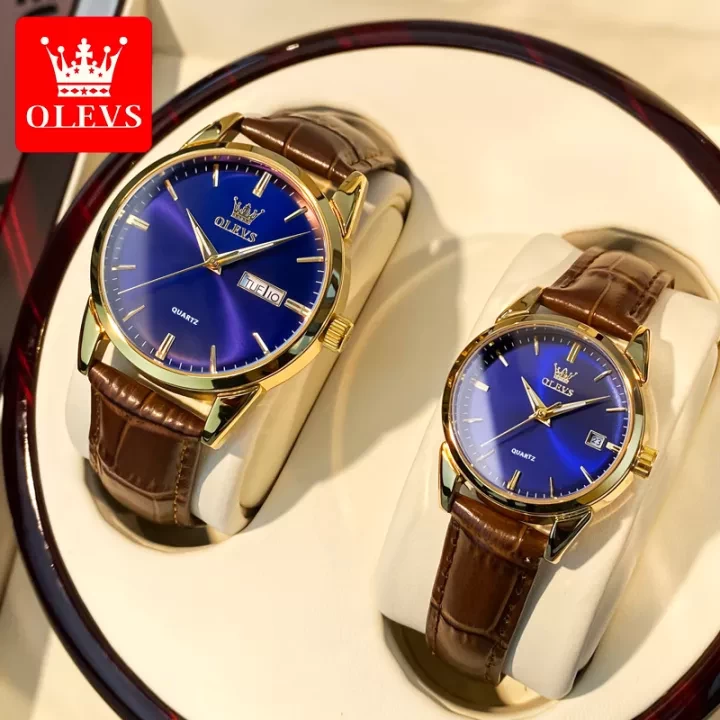 Specifications of Swiss certified brand OLEVS 2pcs (men's clock + women's clock) new couple watch 2022 waterproof genuine original imported sapphire glass leather strap Luminous calendar