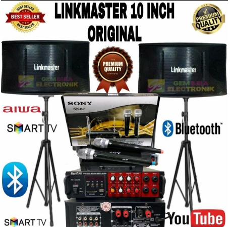 Paket karaoke Linkmaster super gaya full power bass nya sedappppp... KELENGKAPAN: 1 set Speaker Linkmaster 10"inchi (sepasang /2pcs) 1 pcs Power Amplifier Mixer (Bluetooth, USB & MMC Card) 1 Set Stand Speaker 2 buah mic wireless Shure/Sony ( yg ready yg mana ) FREE Kabel Speaker 10 Meter SIAP PAKAI TIDAK PERLU SETTING APAPUN LAGI TINGGAL COLOK AJA. Ready Stock…Langsung Order aja yah gan… Kami Supplier Langsung, Bukan Resseller dan Dropshipper… Kapok Belanja Online ?? Cuma di GEMBIRA ELECTRONIK kamu dapet garansi barang real pic, no tipu tipu Semua Produk Kami Bergaransi 1 Tahun ( S&K Berlaku ) Pesanan di hari kerja sampai jam 4 sore dikirim di hari yang sama… Siap Antar Via GOJEK/GRAB Note: Hati-hati produk tiruan dengan harga murah, jangan hanya karena selisih harga sedikit anda membeli produk palsu kami jamin barang kami authentic 100% original jika tidak kami ganti 10x lipat