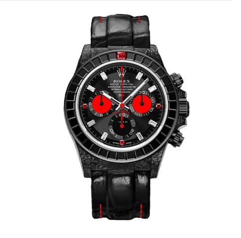 When Art reaches new boundaries, a special timepiece is crafted. The Daytona Rainbow Black is a fascinating member of the carbon series, however, its "stone touch" in the bezel highlights its look, as the ruby in the 12 o'clock marker becomes the cherry on the cake.