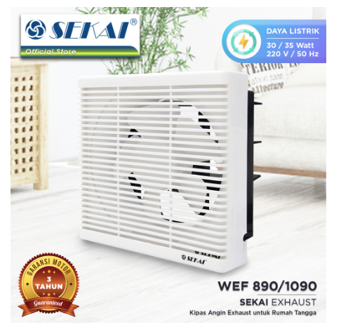 SEKAI Exhaust Fan Dinding / Kipas Angin Hexos 8 Inch - WEF 890 Spesifikasi Produk - Kipas Angin Exhaust Dinding 20 cm (8”) - Daya : Out. 25 / In. 30 Watt - Daya Sedot : 5.00 m³/min - Pengatur Keluar & Masuk Aliran Udara - Dilengkapi Sekring Pengaman - Baling-Baling Tidak Berisik - Dengan plasticbody - Ukuran Pemasangan 24,0 x 24,0 cm