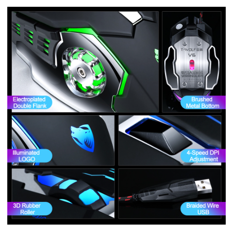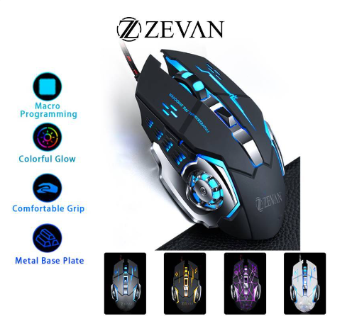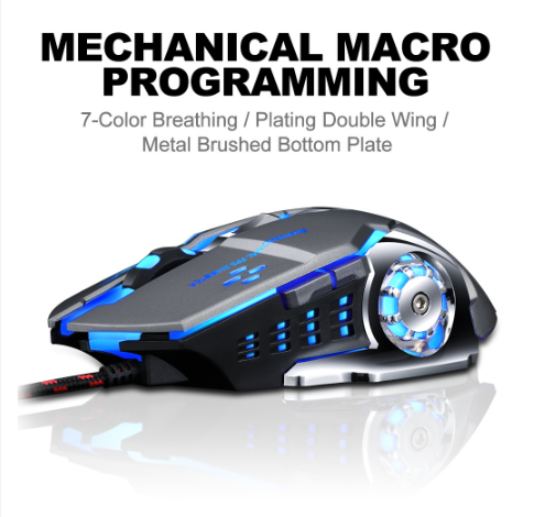 ZEVAN COD RGB 7-COLOR Mouse Kabel GAMING LED T-WOLF V6 (RGB) Mouse Game 【Keterangan】 - Desain ergonomis, cocok untuk semua jenis tangan dan komputer. Jenis DPI yang dapat disesuaikan memberikan pemosisian yang tepat. - KETEPATAN KENYAMANAN DI TANGAN ANDA, Desain bentuk ergonomis ditambah roda gulir dengan permukaan karet dan ramah kulit memberi Anda perasaan paling nyaman di tangan untuk waktu yang lama. Mouse gaming berkabel yang sangat baik untuk gamer pc kasual. Penuhi berbagai kebutuhan Anda, baik untuk pekerjaan sehari-hari atau bermain game. - Hadiah yang cukup bagus untuk anak, suami, dan teman Anda. 【Fitur】 - Merk : ZEVAN - Model: T-WOLF V6 - Ukuran mouse: Mouse (≥120mm) - Cahaya RGB 7-WARNA - Jumlah tombol: 6 tombol - DPI 800 / 1600/2400 /3200 DPI - Metode koneksi: kabel - Metode kerja: fotolistrik - Resolusi fotolistrik: 3200 【Spesifikasi】 - Resolusi yang dapat disesuaikan: 4 file - Jarak operasi: 1.5 meter - Apakah akan mendukung ergonomi: dukungan - Arah roda: roda arah - Ukuran produk: 135x80x43mm - Berat produk: 200 (G) - Antarmuka: USB - Warna: Besi abu-abu/Putih mutiara/Bintang hitam/Teknologi hitam 【Kemasan】 - 1 * pc Mouse
